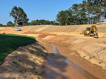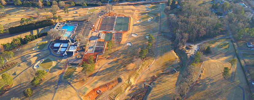 Due to changes in the ancillary buildings, Holes 14-16 had to be completely redesigned and rebuilt from the ground up. Over 57,000 cubic yards of dirt were moved from the old racquet facility location to accommodate the new location. Additionally, a creek was opened and rerouted to bisect the fairway of the new 15th hole and flow into a natural wetland/pond in and around the left side of the new 15th green.